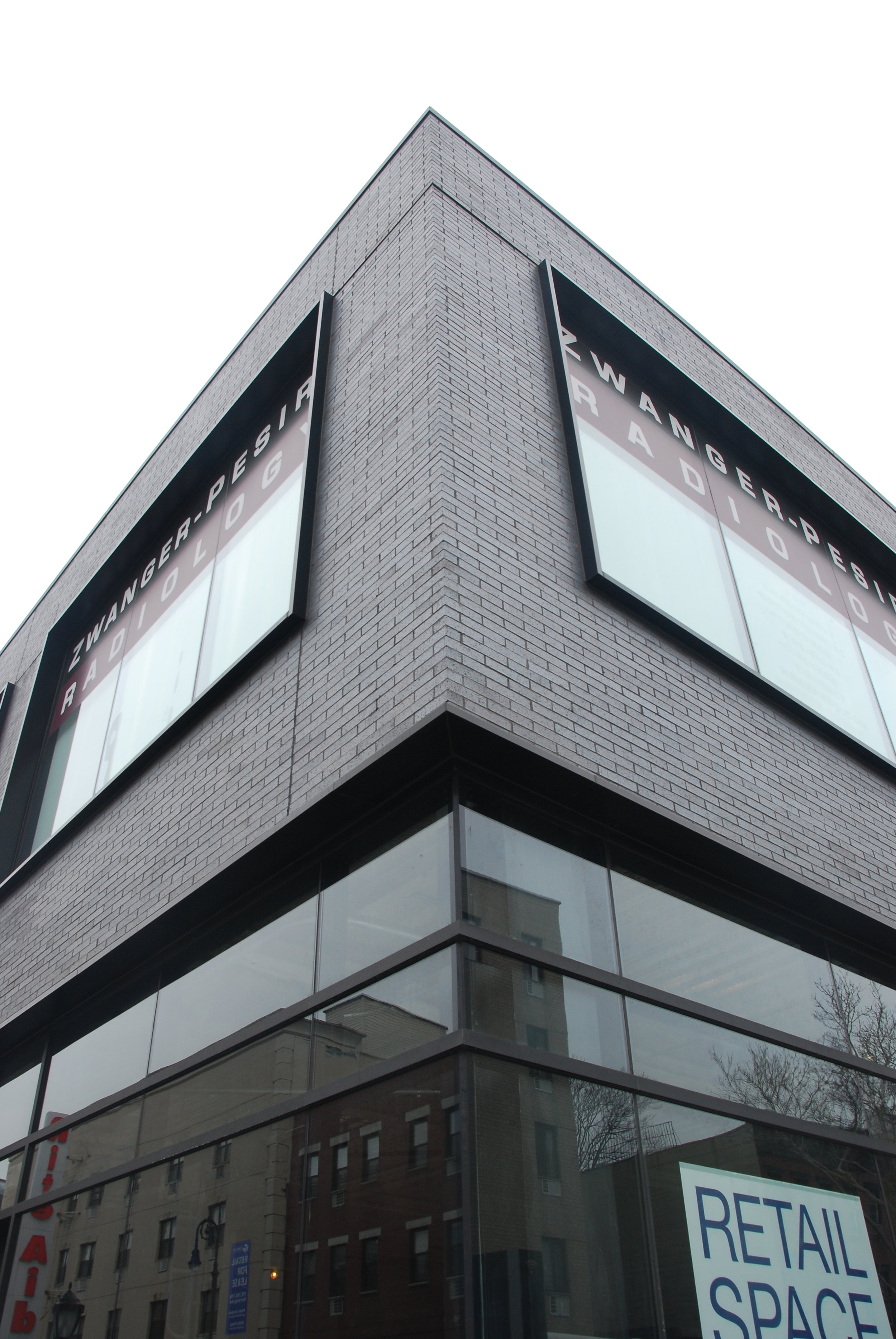 A supermarket occupies the ground floor and the second floor hosts a medical imaging facility. The second floor structure was originally designed and built as a commercial space but it was modified after the structure had already been finalized to accommodate the medical facility.