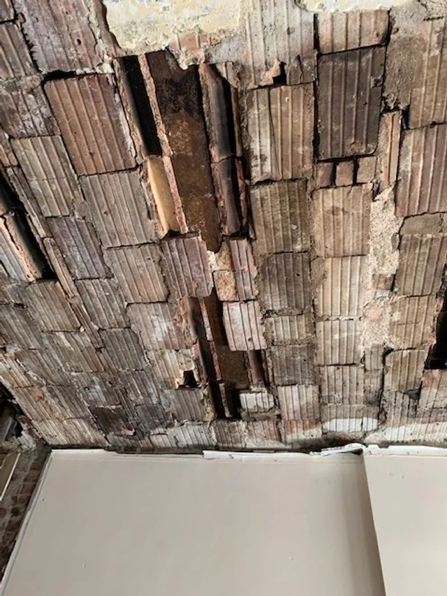 The original terracotta flat arch floors are supported by steel beams and reinforced with steel tie rods. The beams bear on perimeter brick bearing walls and on interior steel beams and cast iron columns columns and brick walls surrounding a lightwell. The structure was deteriorated and the integrity of the arches was partially compromised during previous remodeling projects. The extensive structural work included restoring the structural integrity of the slabs and facade rehabilitation, new stairs and elevator with bulkheads, new openings in slabs and exterior walls, floor infills.